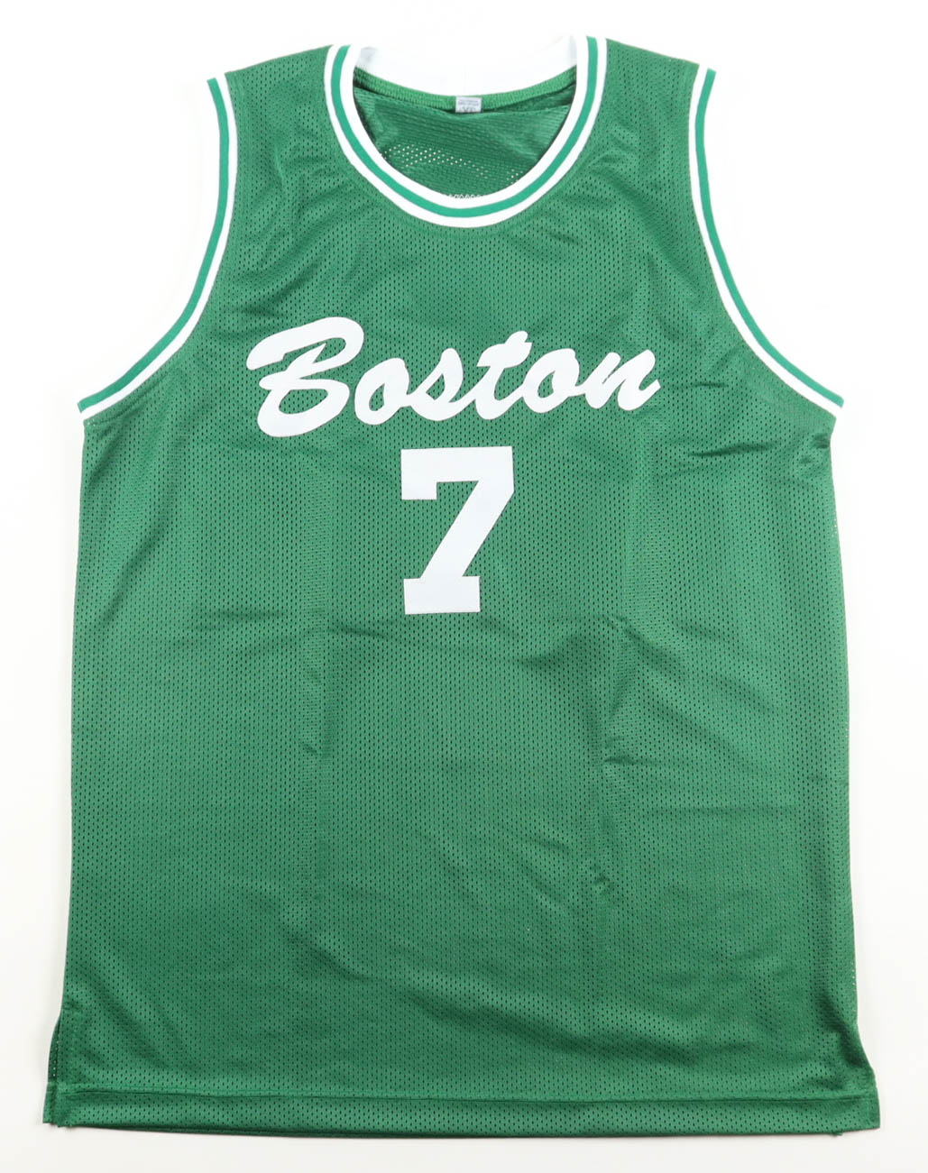 Custom jersey is size XL. Everything is sewn on. Hand-signed by Jaylen Brown.