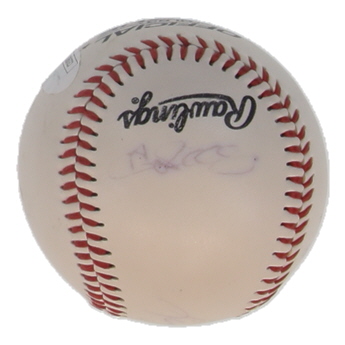 Rawlings Official League baseball has been hand-signed and inscribed by (6) with Pat Burrell, Mike Liberthal, Larry Bowa, Jimmy Rollins, Harry Kalas and Chase Utley. Please see photos for more details regarding the condition of the item as the ball shows natural signs of toning. Note that the item has been addressed "To Tami".