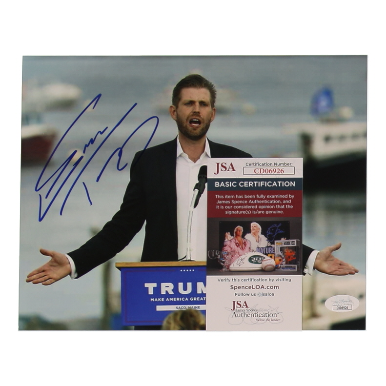 Photo measures 8" x 10" in size and has been hand-signed by Eric Trump.