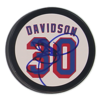 John Davidson Signed Rangers Logo Hockey Puck (JSA)