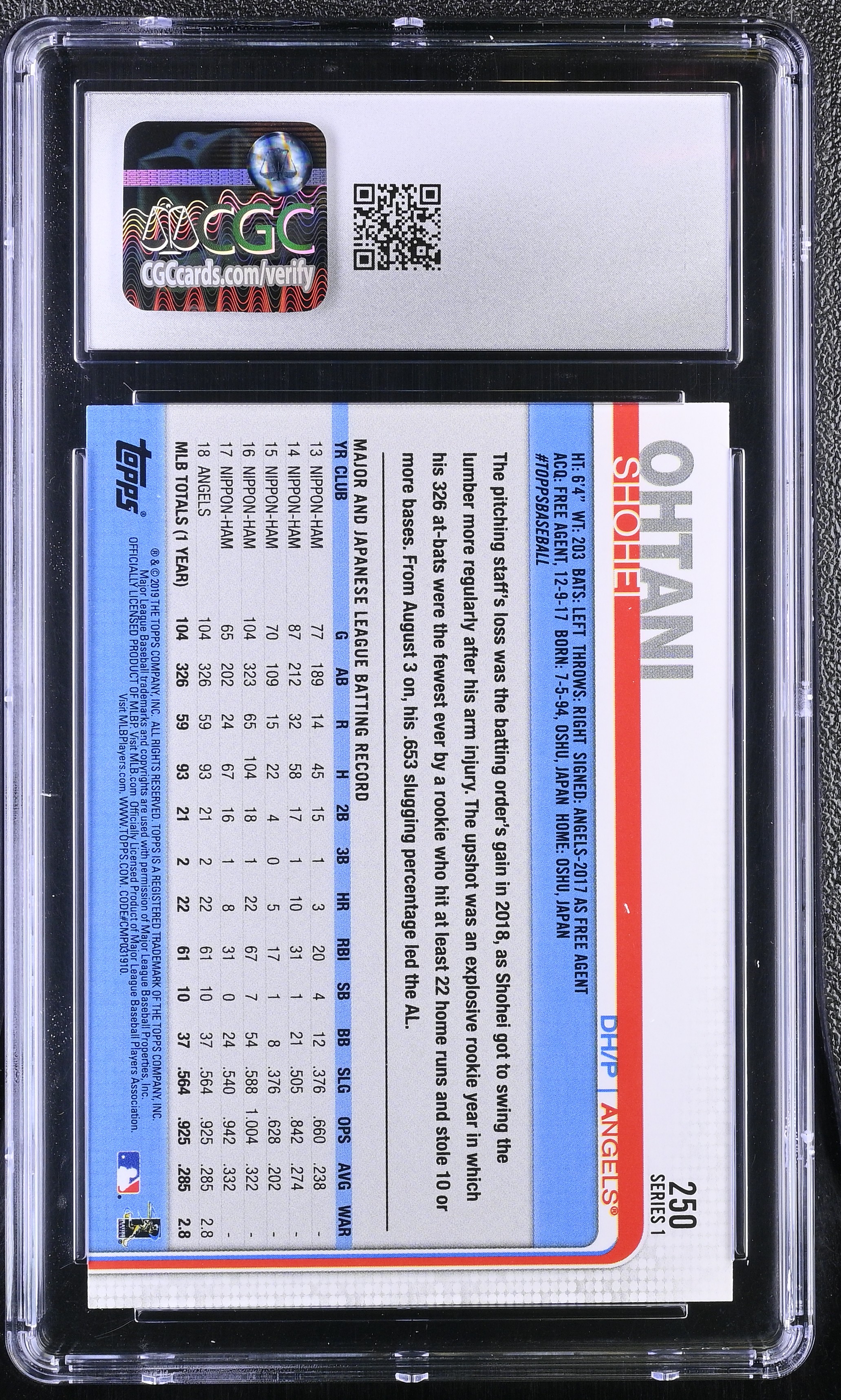Shohei Ohtani 2019 Topps #250 (CGC 9)