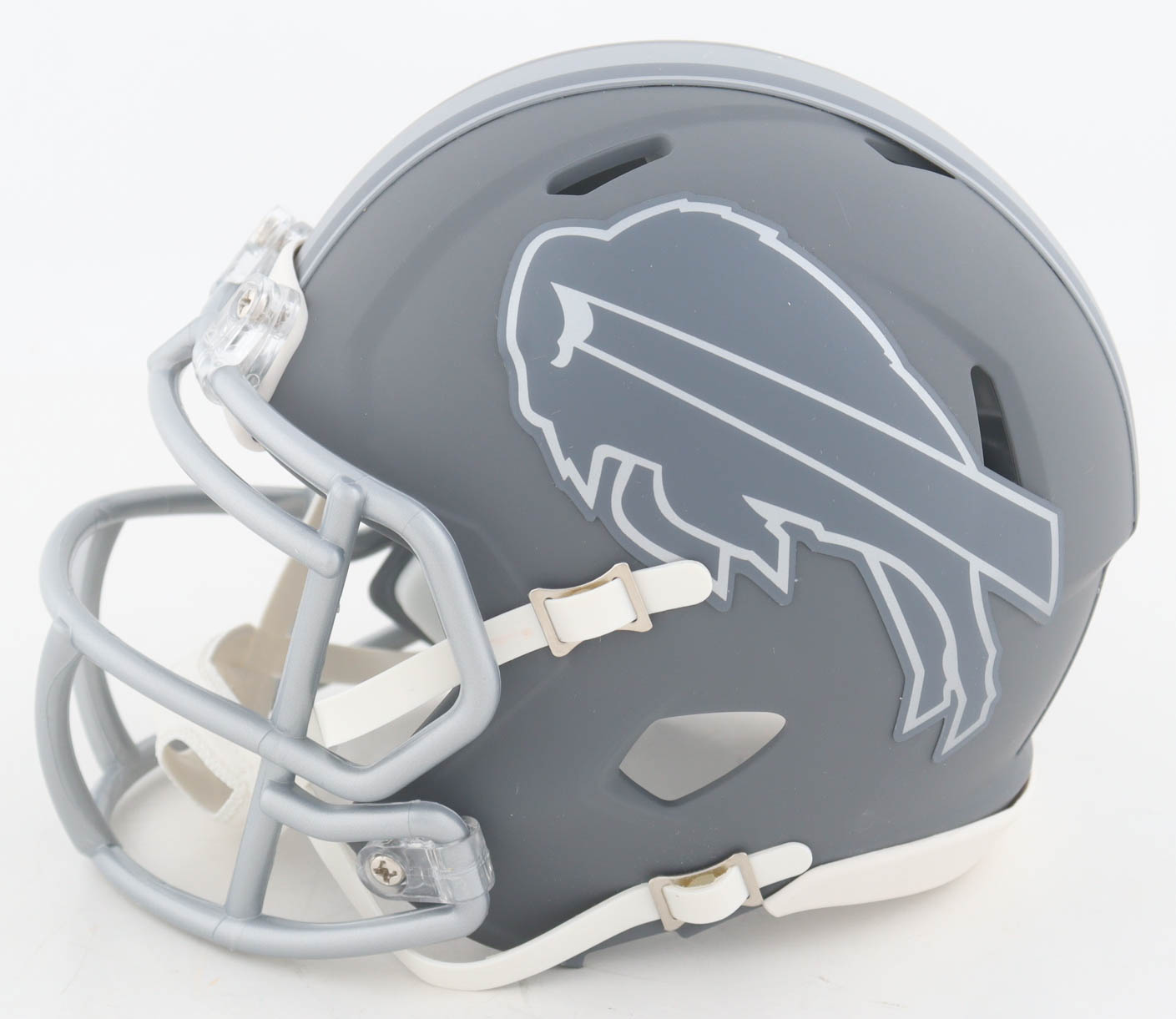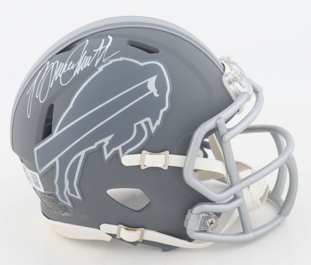 Riddell Buffalo Bills Slate Alternate mini speed helmet. Hand-signed by Bruce Smith (HOF).