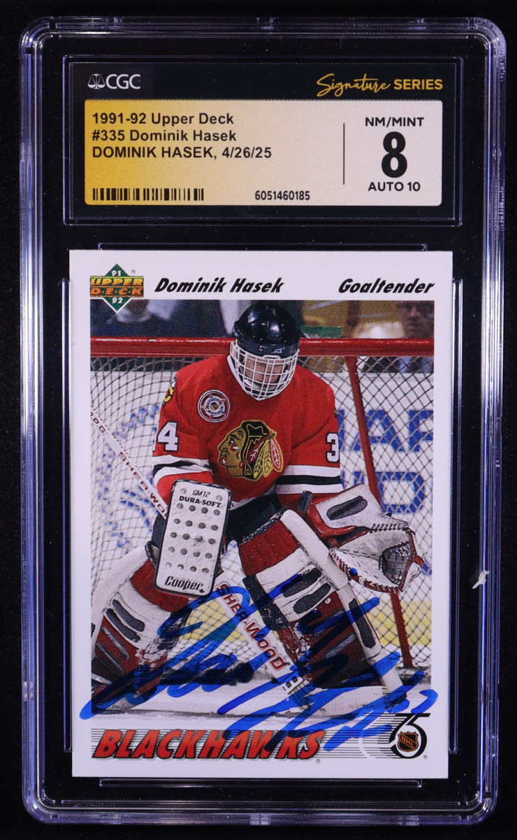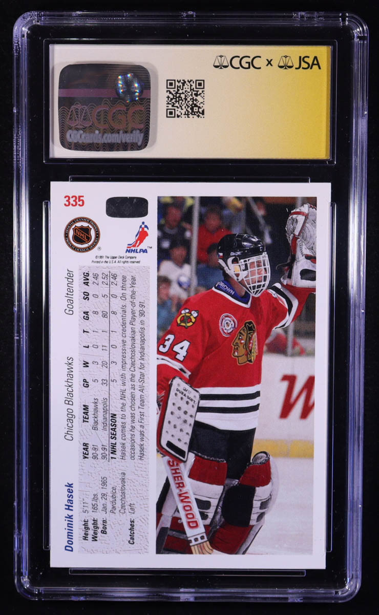 Dominik Hasek Signed 1990-91 Upper Deck #335 RC (CGC x JSA 8 | Autograph Graded 10)