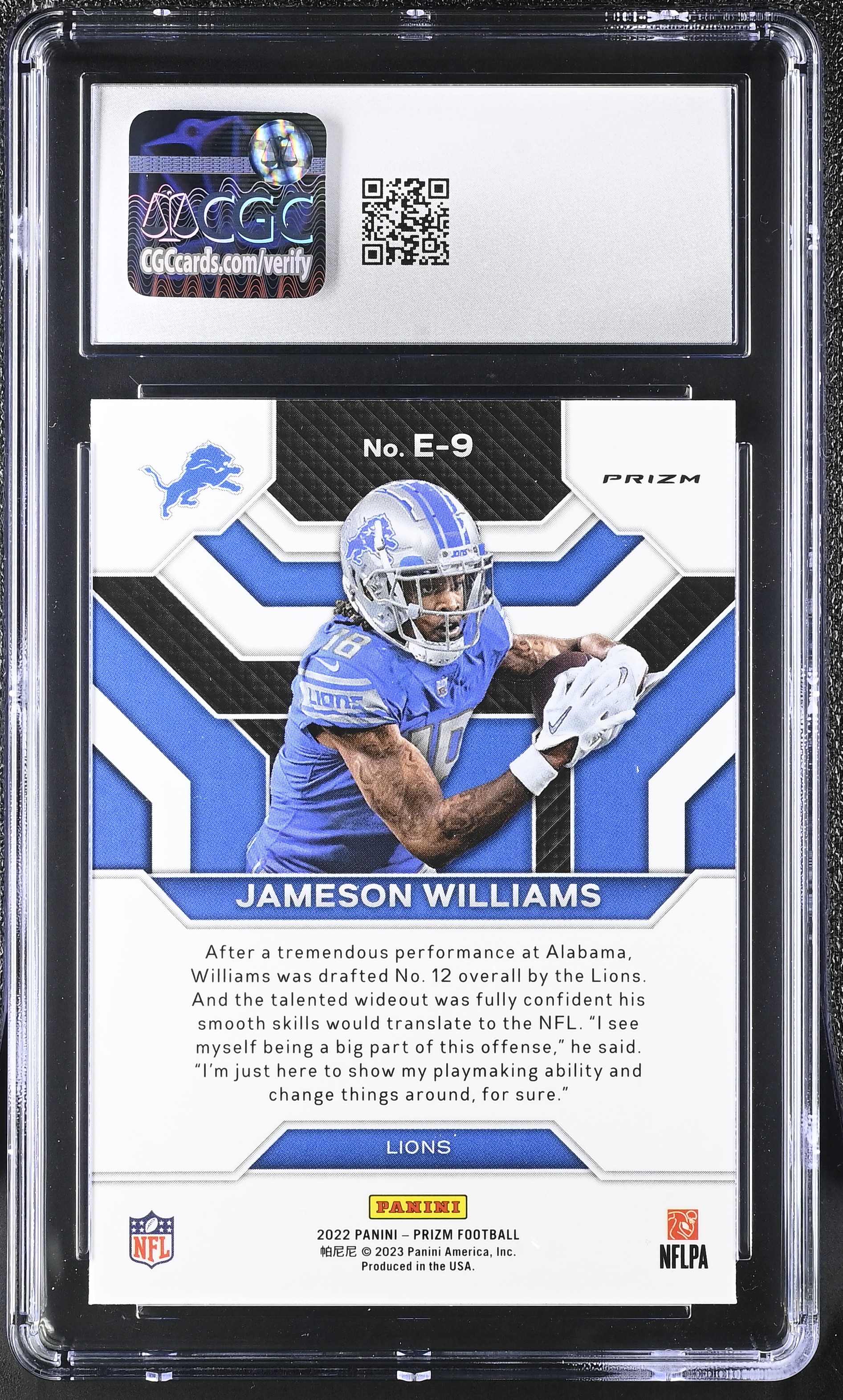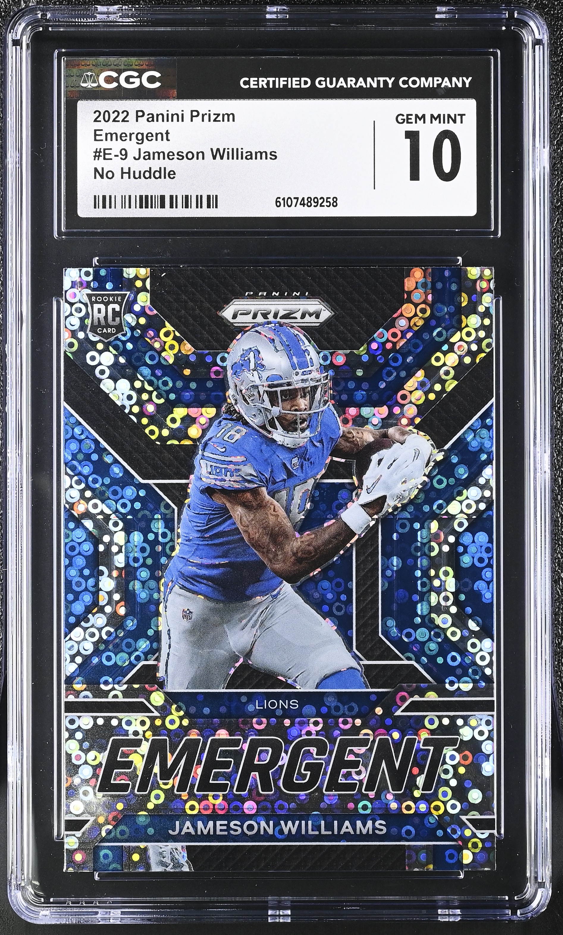 Jameson Williams 2022 Panini Prizm Emergent No Huddle #E-9 RC (CGC 10)
