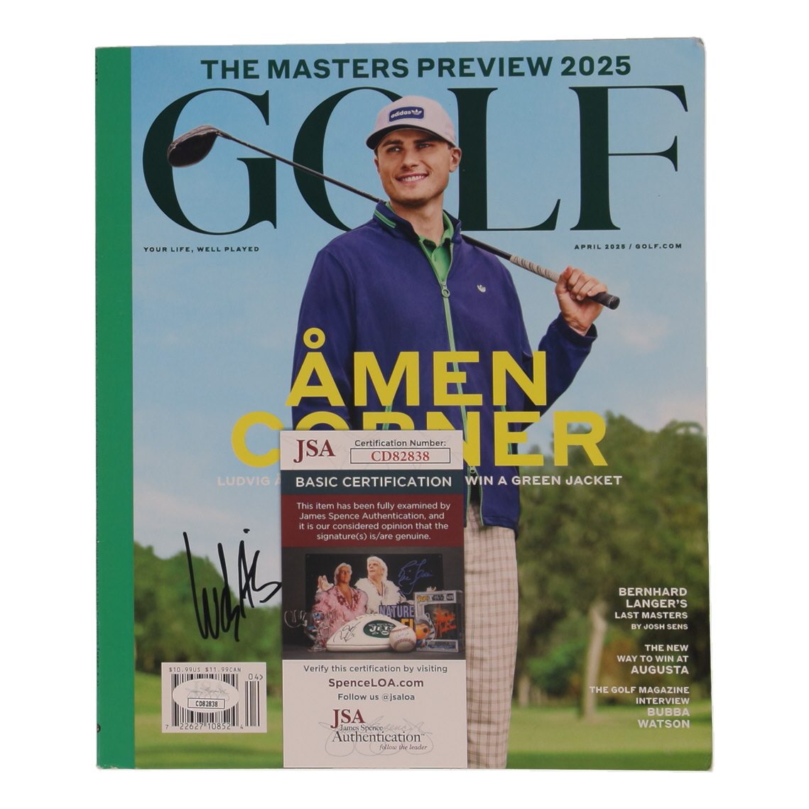 April 2025 issue of Golf magazine. Hand-signed on the front cover by Ludvig Aberg.