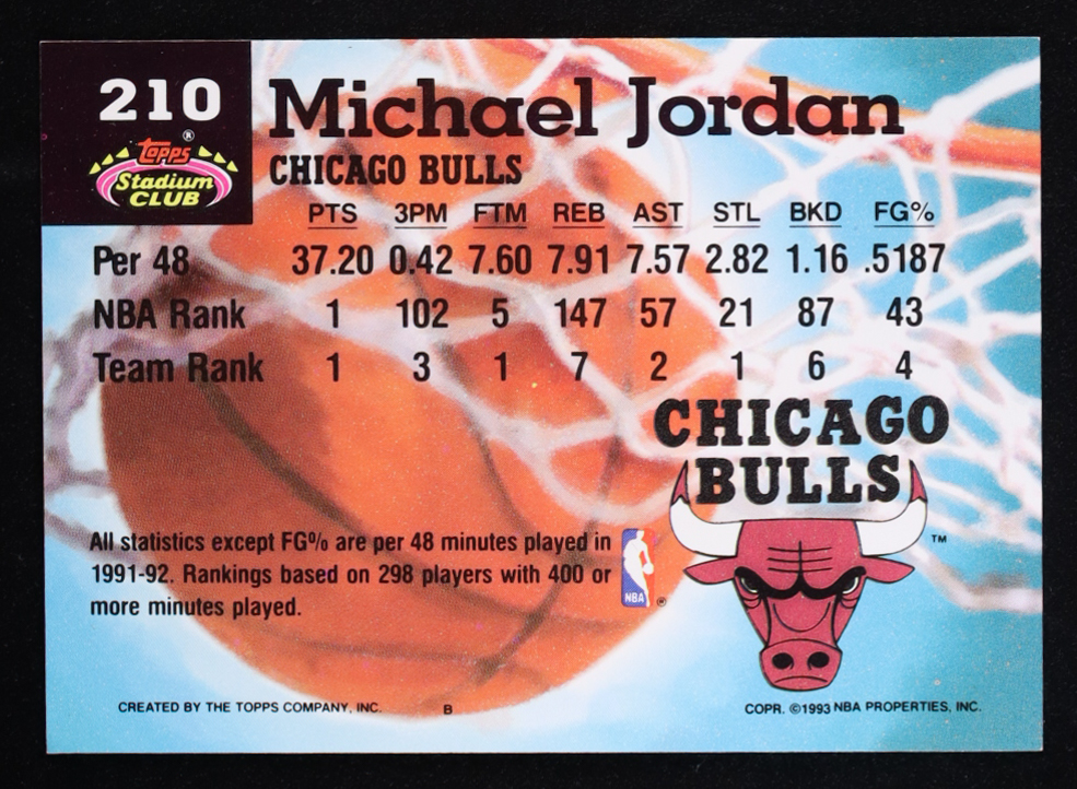 Michael Jordan 1993 Topps Stadium Club #210