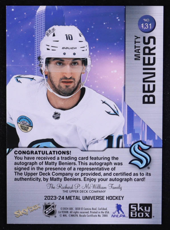 Matty Beniers 2023-24 Metal Universe Autographs Silver #131