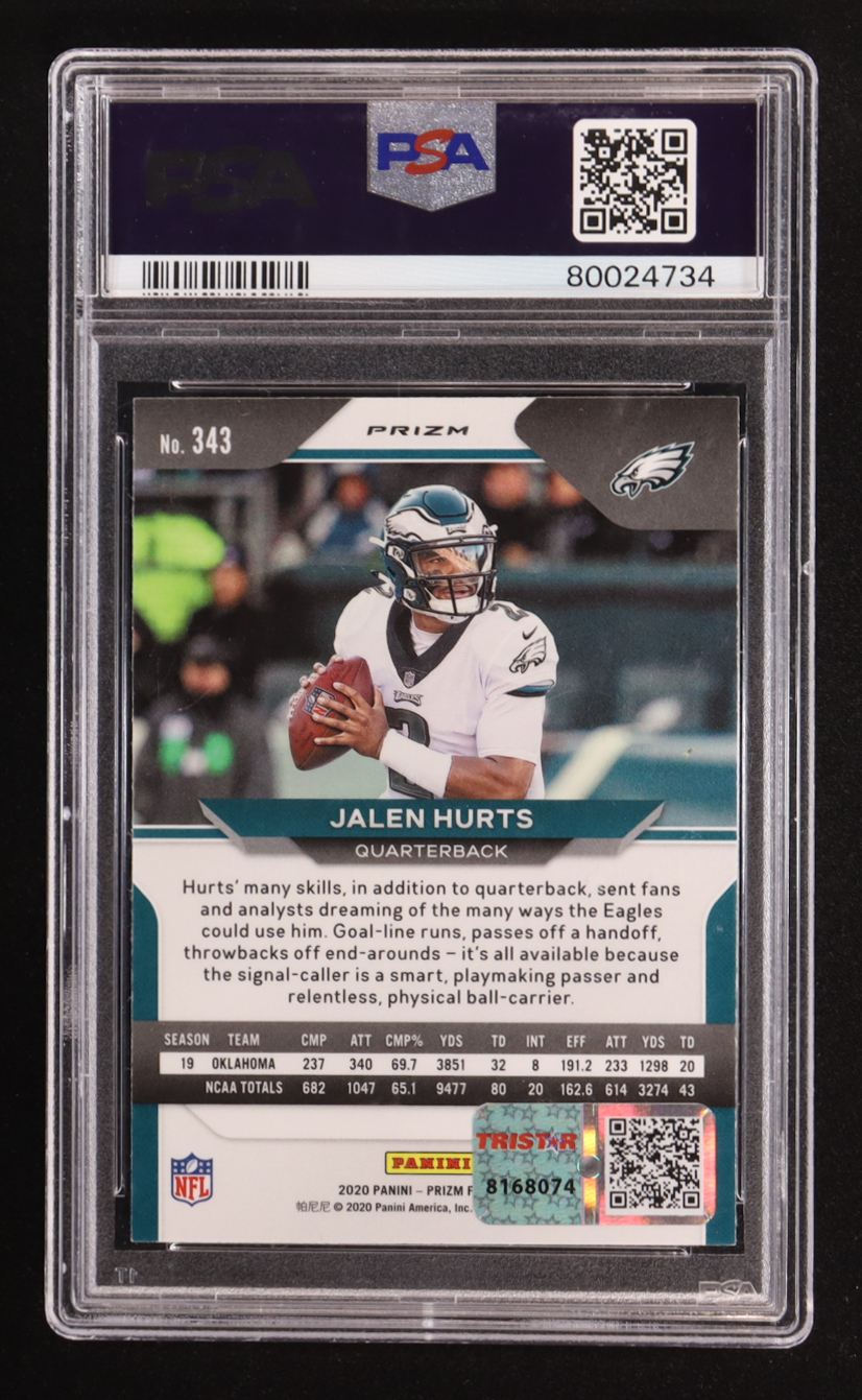 Jalen Hurts Signed 2020 Panini Prizm Prizms Red Ice #343 RC (PSA)