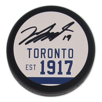 Toronto Maple Leafs Logo Hockey Puck. Hand-signed by Jason Spezza.