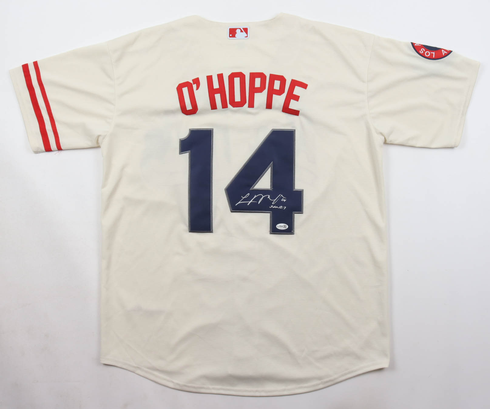Custom jersey with everything sewn on, size XL. Hand-signed by Logan O'Hoppe.