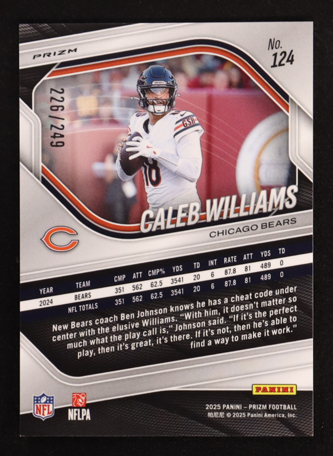 Caleb Williams 2025 Panini Prizm Prizms Orange #124 #226/249