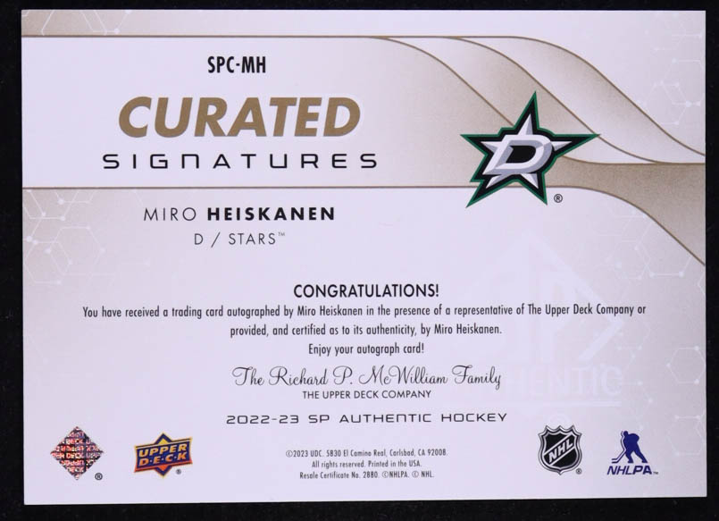 Miro Heiskanen 2022-23 SP Authentic SP Curated Signatures #SPCMH #05/99