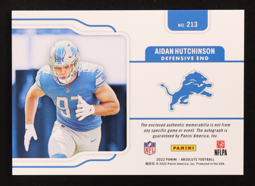 Aidan Hutchinson 2022 Absolute Rookie Premiere Materials Autographs Spectrum #213 #75/99 RC