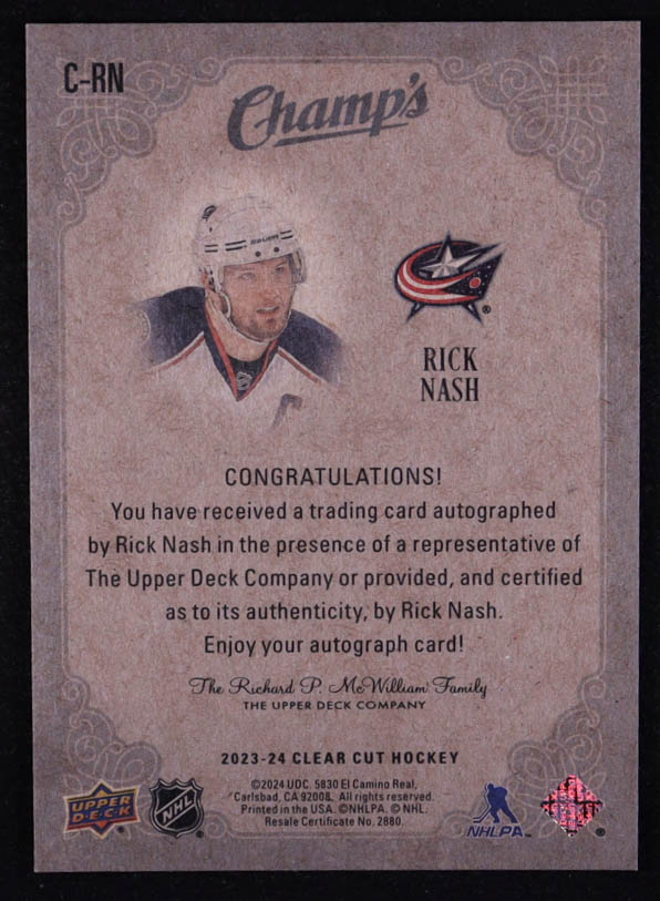 Rick Nash 2023-24 Upper Deck Clear Cut Champs Autographs #CRN