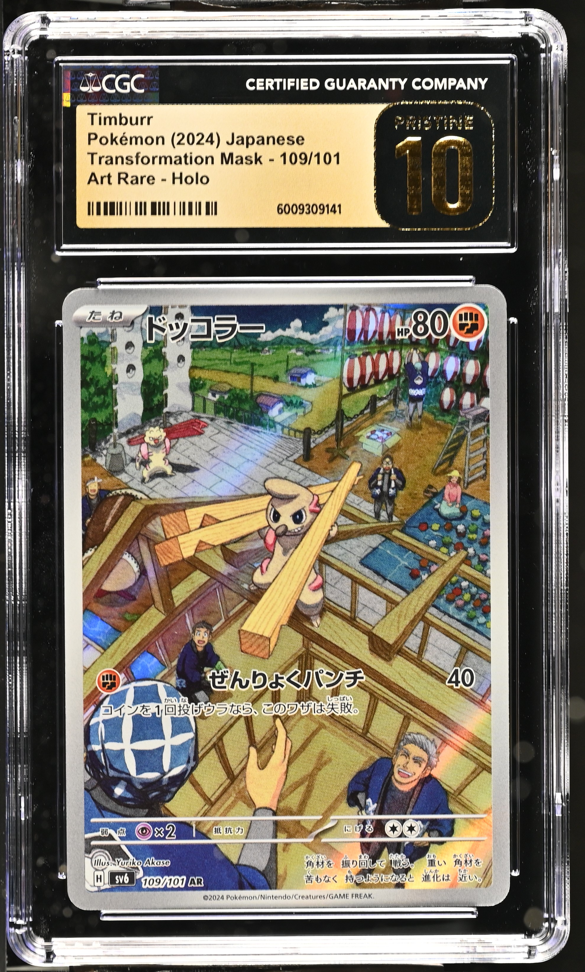 Timburr 2024 Pokemon Card Game Scarlet & Violet Transformation Mask Japanese #109 (CGC 10 | Pristine Black Label)