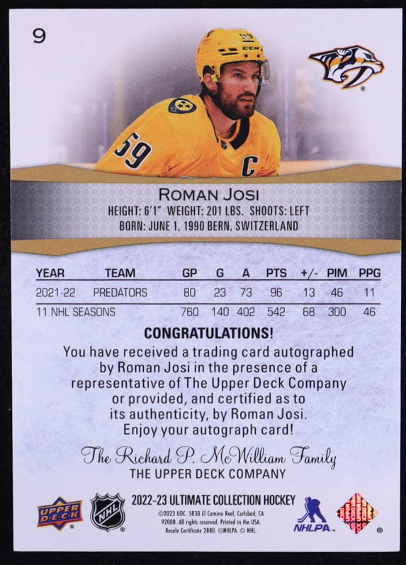 Roman Josi 2022-23 Ultimate Collection Autographs #9