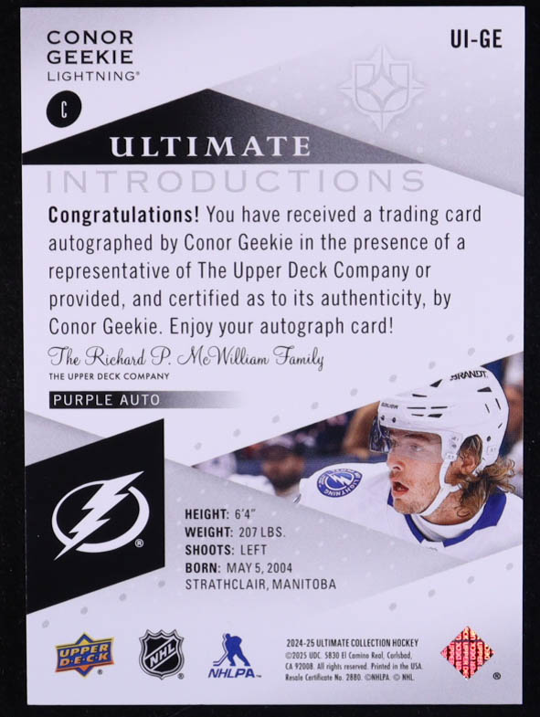 Conor Geekie 2024-25 Ultimate Collection Ultimate Introductions Autographs Purple #UIGE #07/10 RC
