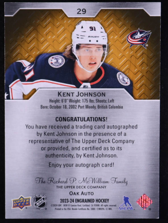 Kent Johnson 2023-24 Upper Deck Engrained Autographs #29