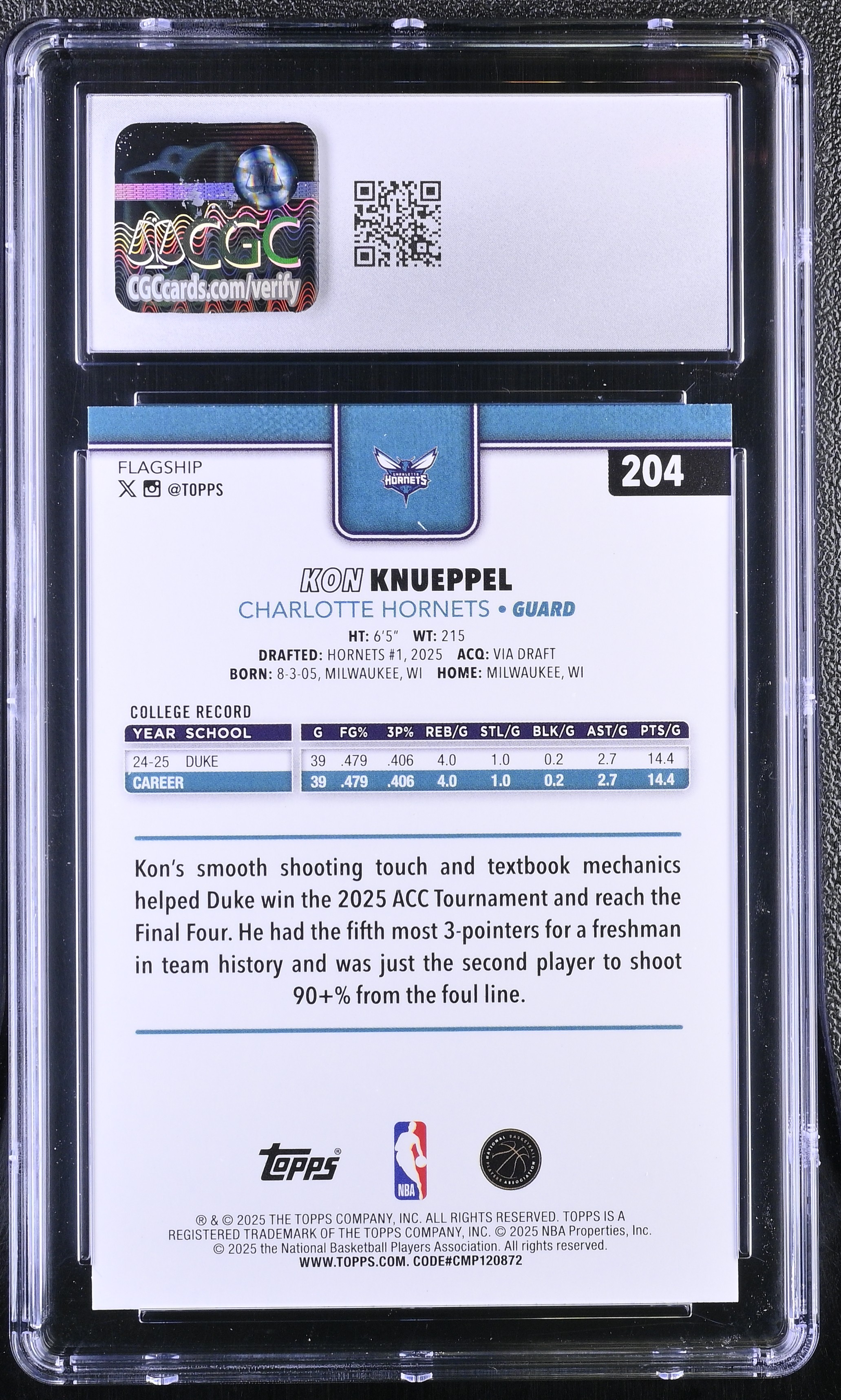 Kon Knueppel 2025-26 Topps #204 RC (CGC 10)