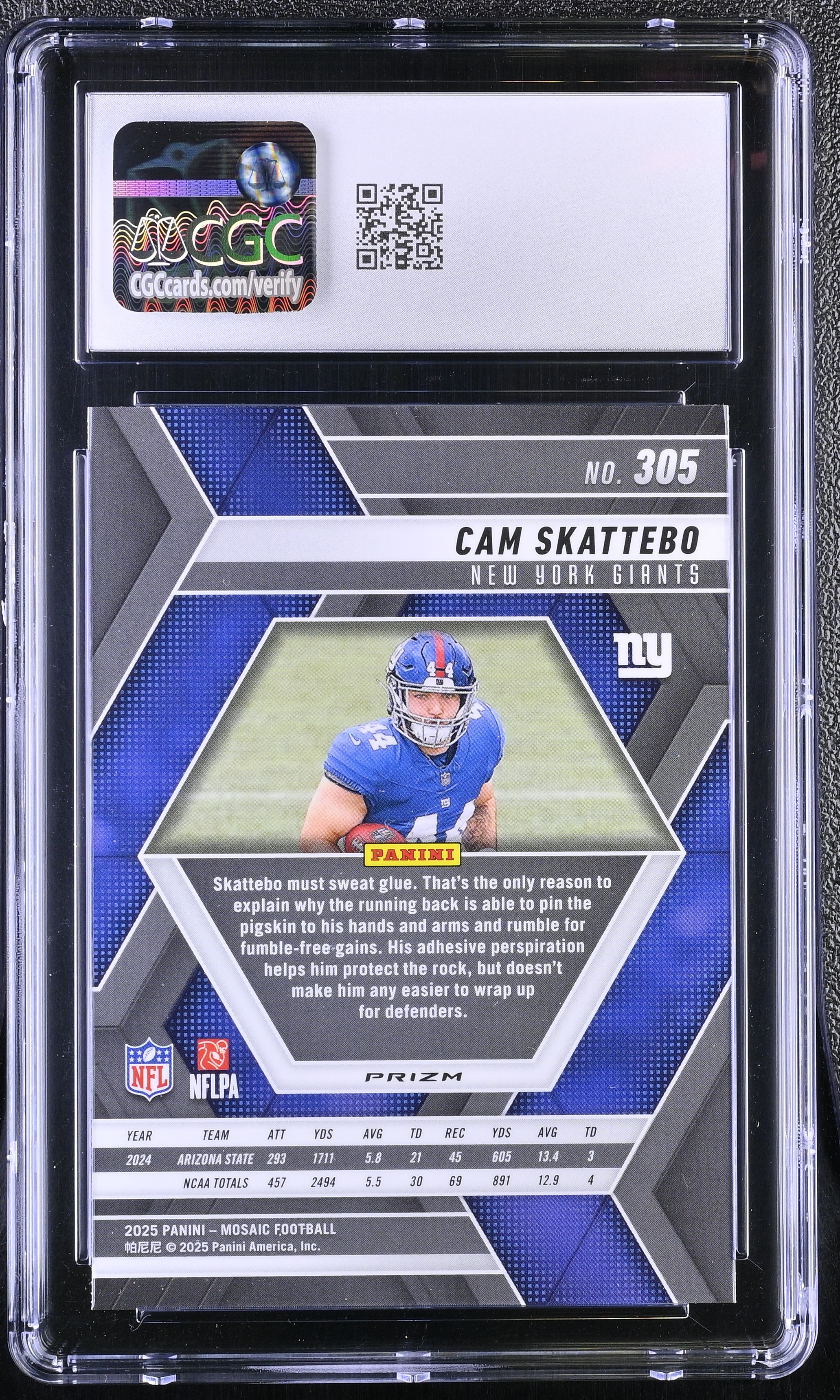 Cam Skattebo 2025 Panini Mosaic Mosaic Reactive Purple #305 RC (CGC 10)