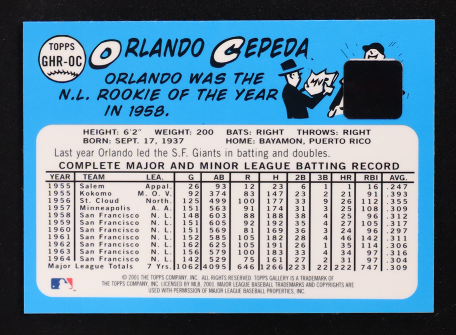 Orlando Cepeda 2001 Topps Gallery Heritage Game Jersey #GHROC