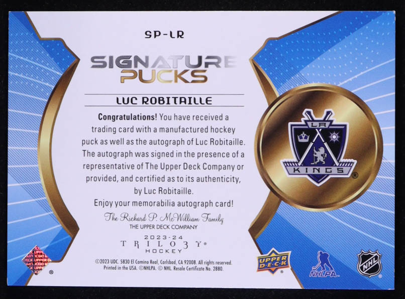 Luc Robitaille 2023-24 Upper Deck Trilogy Signature Pucks SP Autographs #SPLR