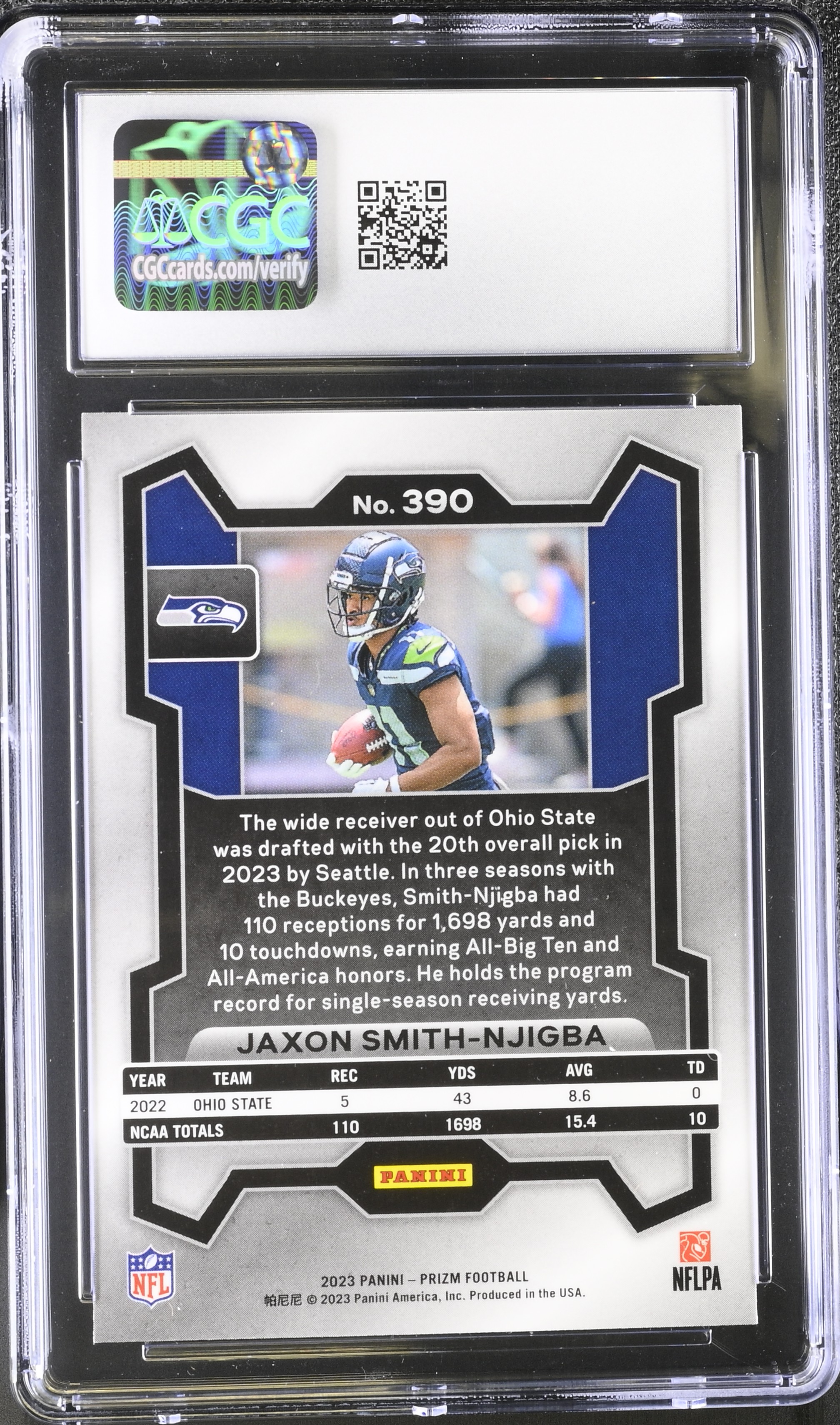 Jaxon Smith-Njigba 2023 Panini Prizm #390 RC (CGC 10)