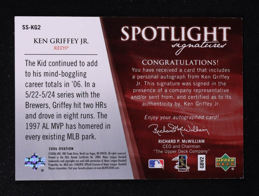 Ken Griffey Jr. 2006 Upper Deck Ovation Spotlight Signatures #KG2