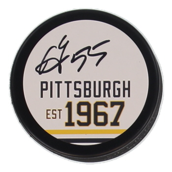 Pittsburgh Penguins Logo Hockey Puck. Hand-signed by Sergei Gonchar.