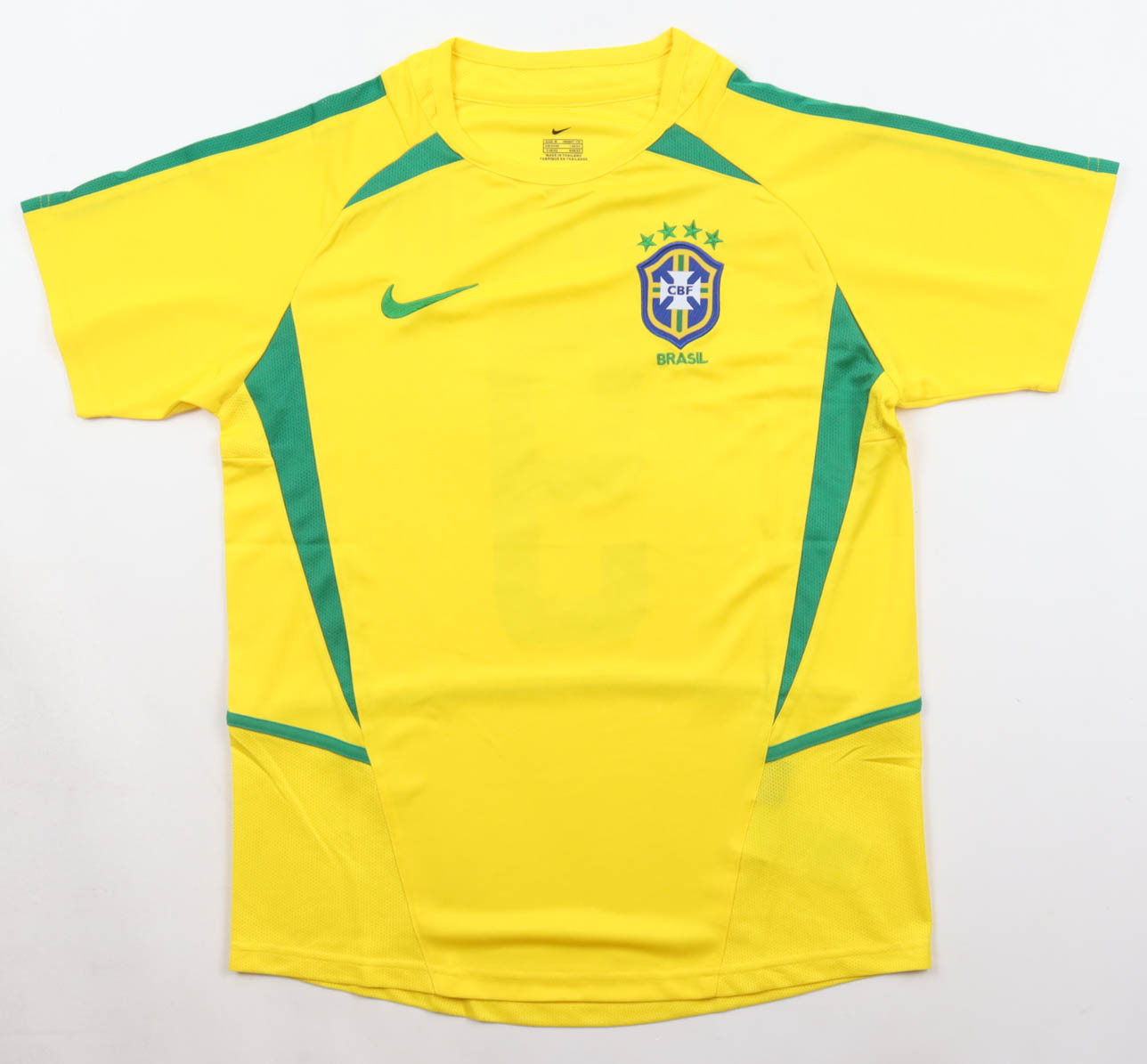 Nike authentic jersey with everything pressed and sewn on, size M. Hand-signed by Ronaldo Nazario (Brazil National Football Team).