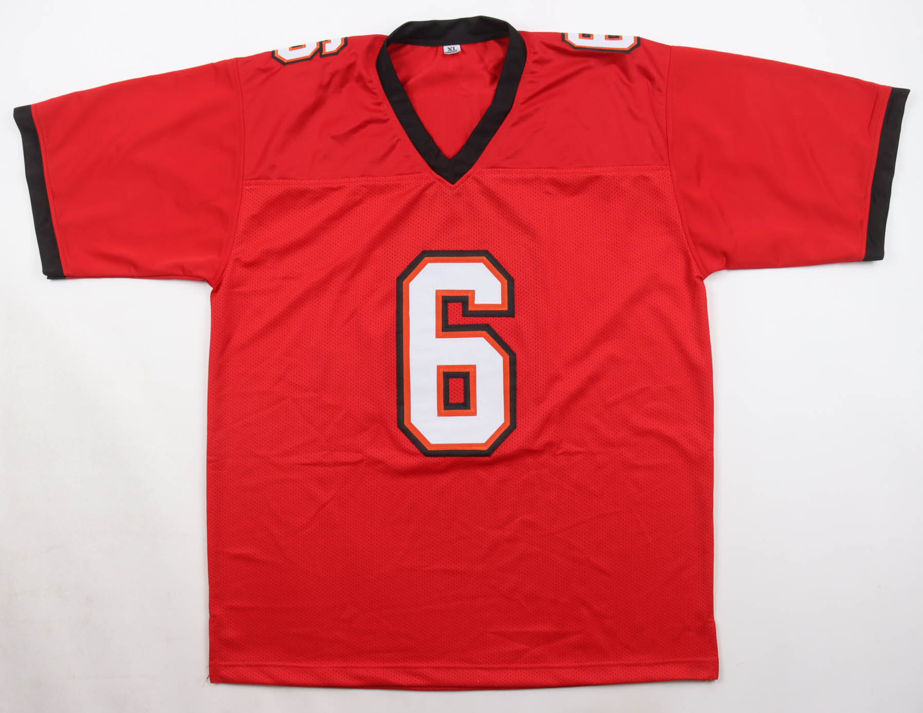 Custom jersey with everything sewn on, size XL. Hand-signed by Baker Mayfield (Tampa Bay Buccaneers).