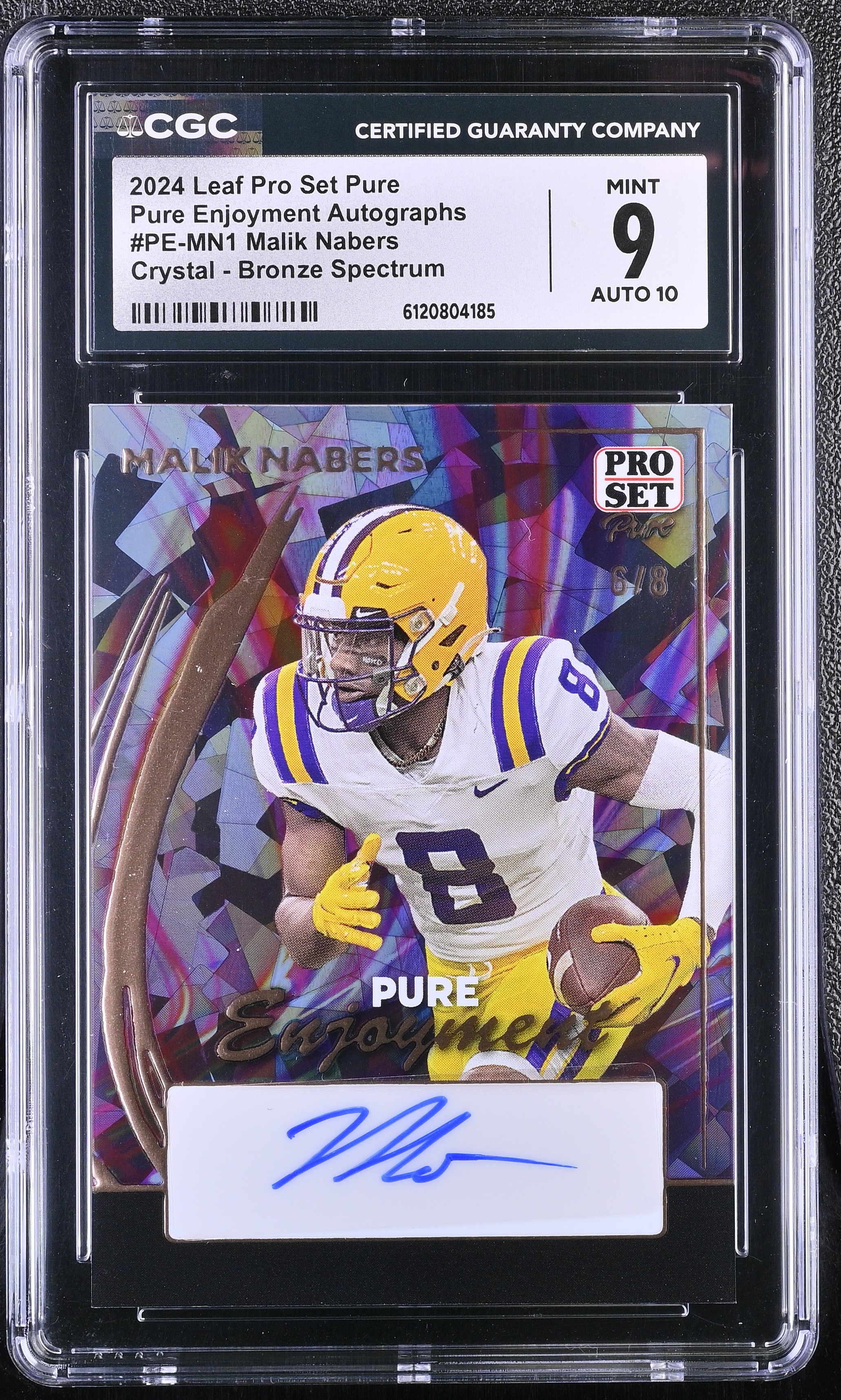Malik Nabers 2024 Leaf Pro Set Pure Pure Enjoyment Autographs Crystal Bronze Spectrum #PEMN1 #6/8 RC (CGC 9 | Autograph Grade 10)