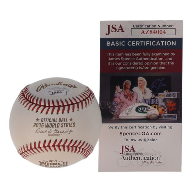 Rawlings Official 2016 World Series baseball. Hand-signed and inscribed by Brandon Hyde (Chicago Cubs).