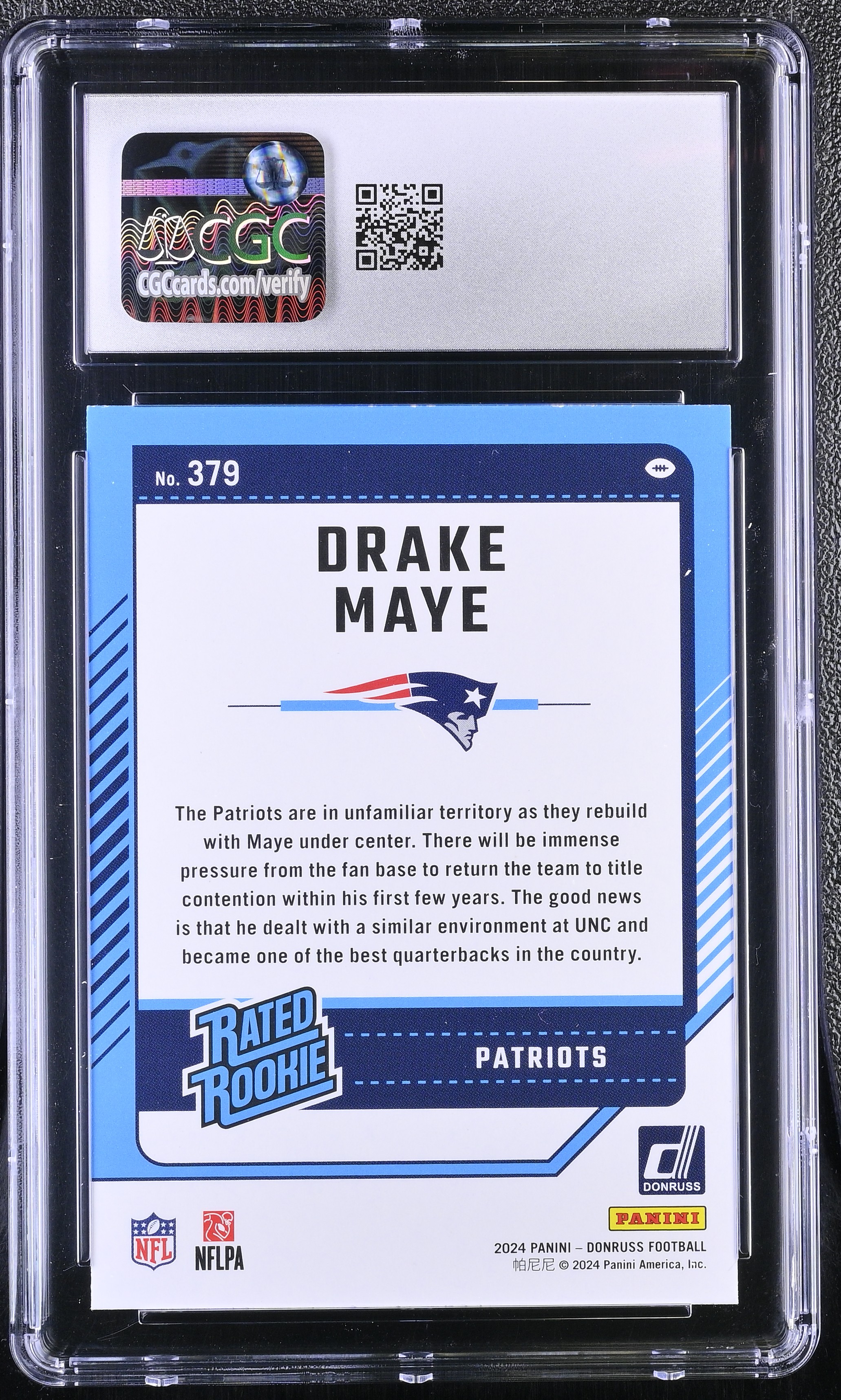 Drake Maye 2024 Donruss #379 RR RC (CGC 9)