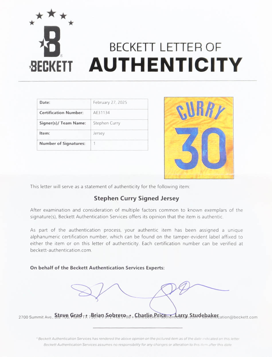 The autograph includes an official Beckett Authentication Services hologram and matching LOA for authenticity purposes.