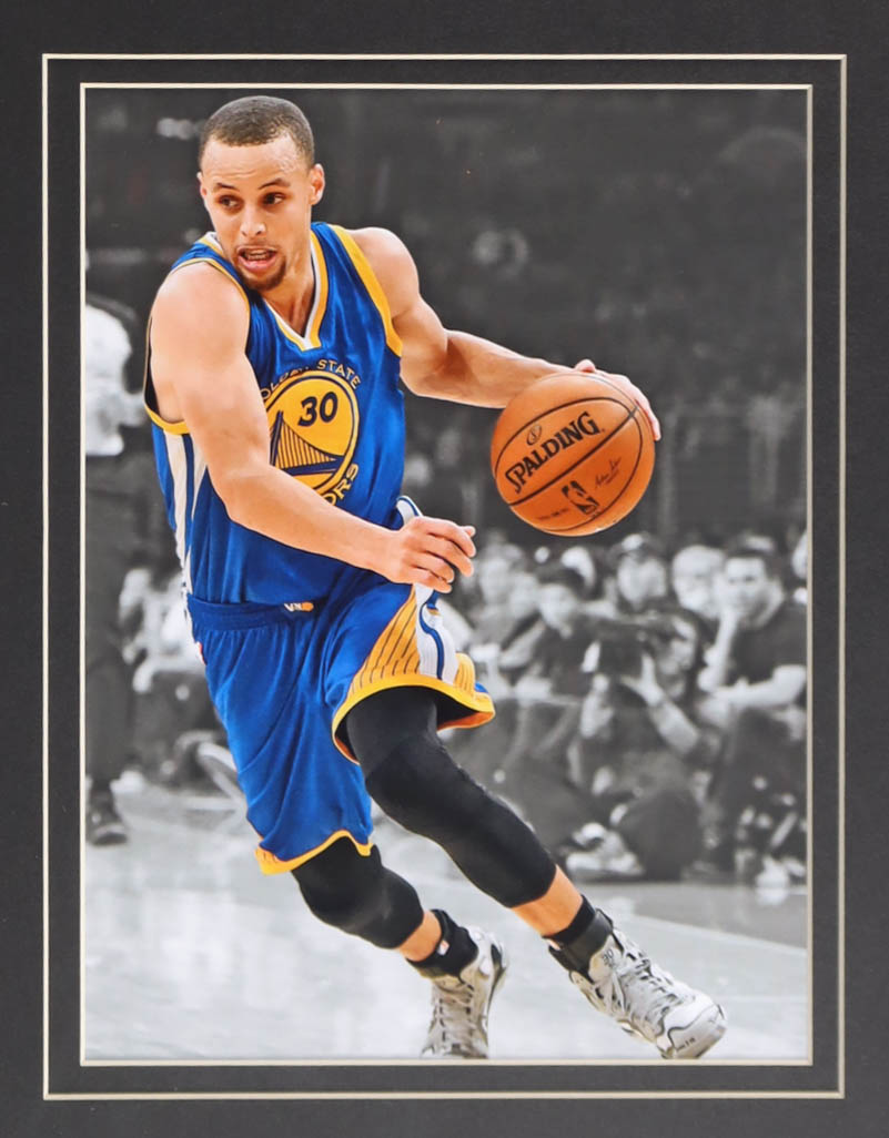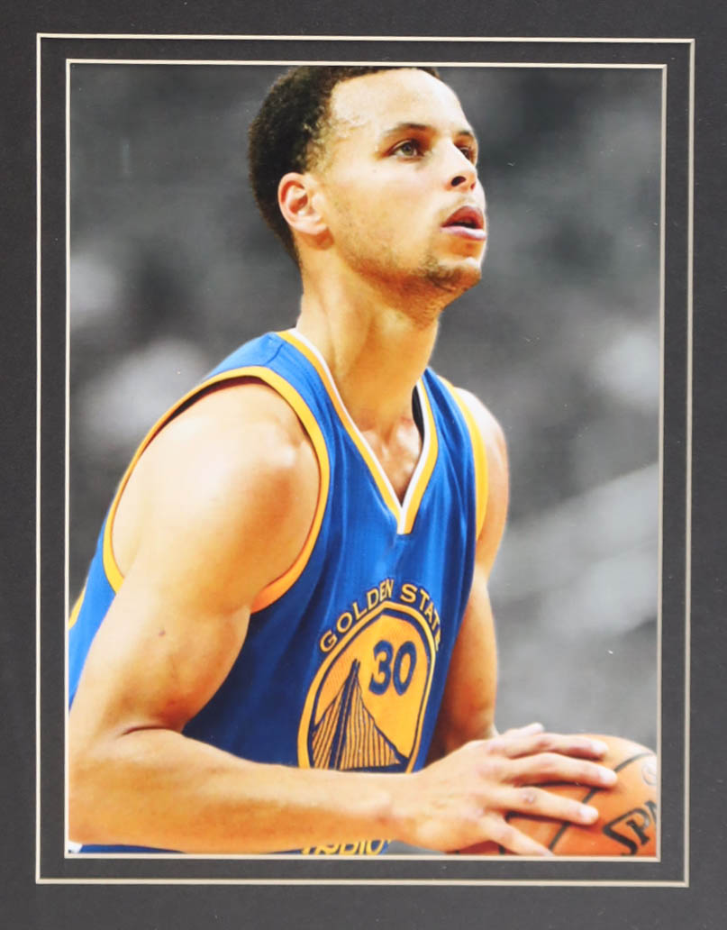 Custom frame measures 35" x 43" in size and features a jersey hand-signed by Stephen Curry. Please note that the 8" x 10" photos may be in reverse order. Display also features (4) NBA Finals Champions pins and (2) NBA Finals cloth patches. Please see photos for details regarding the condition of the item.