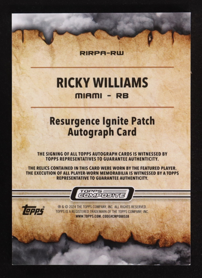 Ricky Williams 2023 Topps Composite Resurgence Ignite Patch Autographs Lime Green Power Surge #RIRPARW #07/20