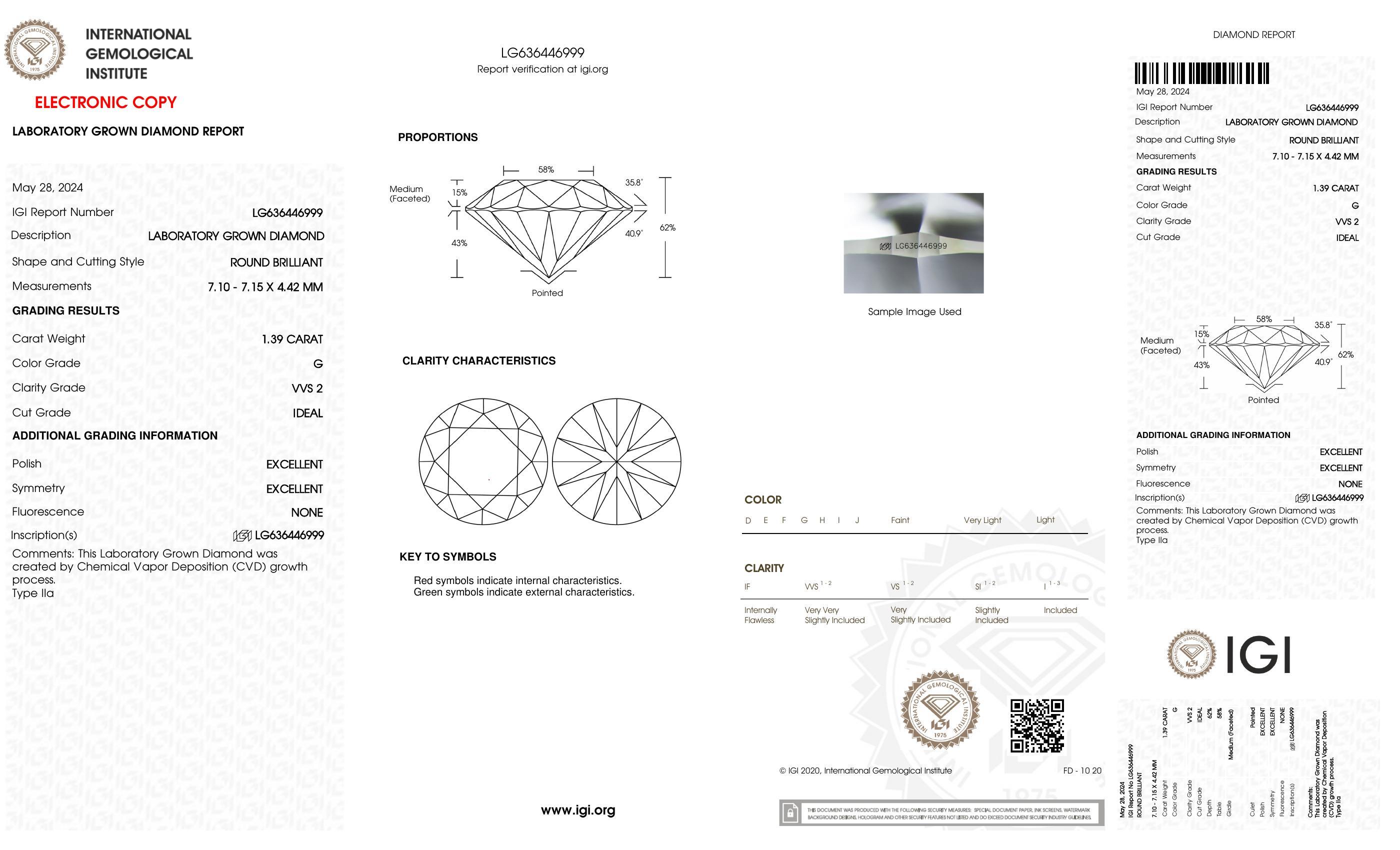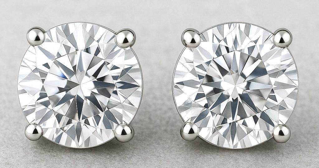 Pair of round brilliant cut laboratory grown diamond stud earrings set in sterling silver mountings. These large diamond studs feature two impressive round brilliant diamonds known for exceptional brilliance and fire. Each diamond displays a G color grade with VVS2 clarity, providing excellent color appearance and very high clarity. Round brilliant diamonds are the most popular diamond shape due to their superior light performance and timeless design. Each diamond is laser inscribed and accompanied by its own IGI Laboratory Grown Diamond Report verifying the grading details. A UGL appraisal report is also included documenting the earrings and providing an estimated retail replacement value for insurance purposes.