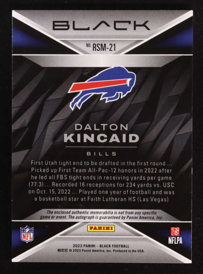 Dalton Kincaid 2023 Panini Black Rookie Signature Materials Emerald #21 #09/25 RC