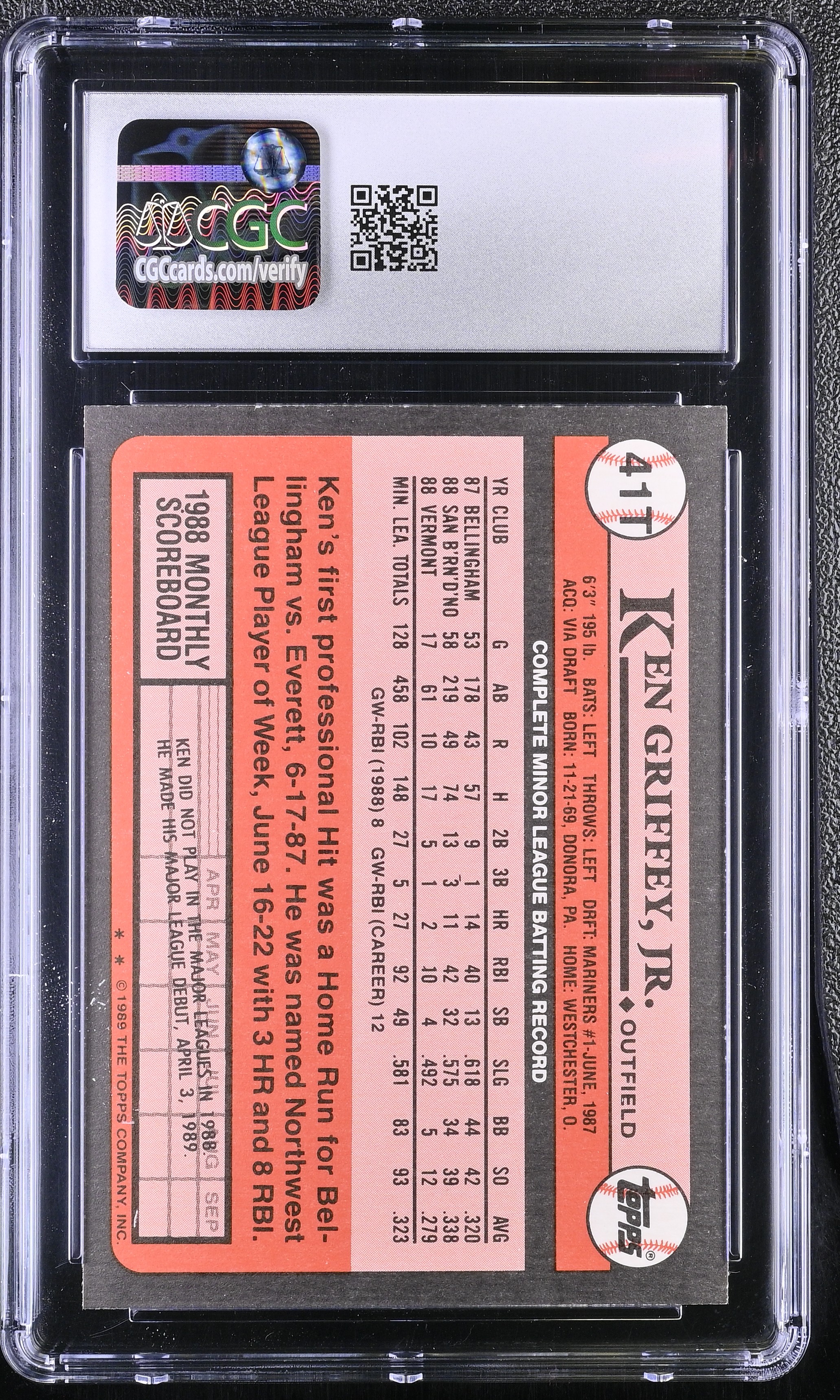 Ken Griffey Jr. 1989 Topps Traded #41T RC (CGC 9)