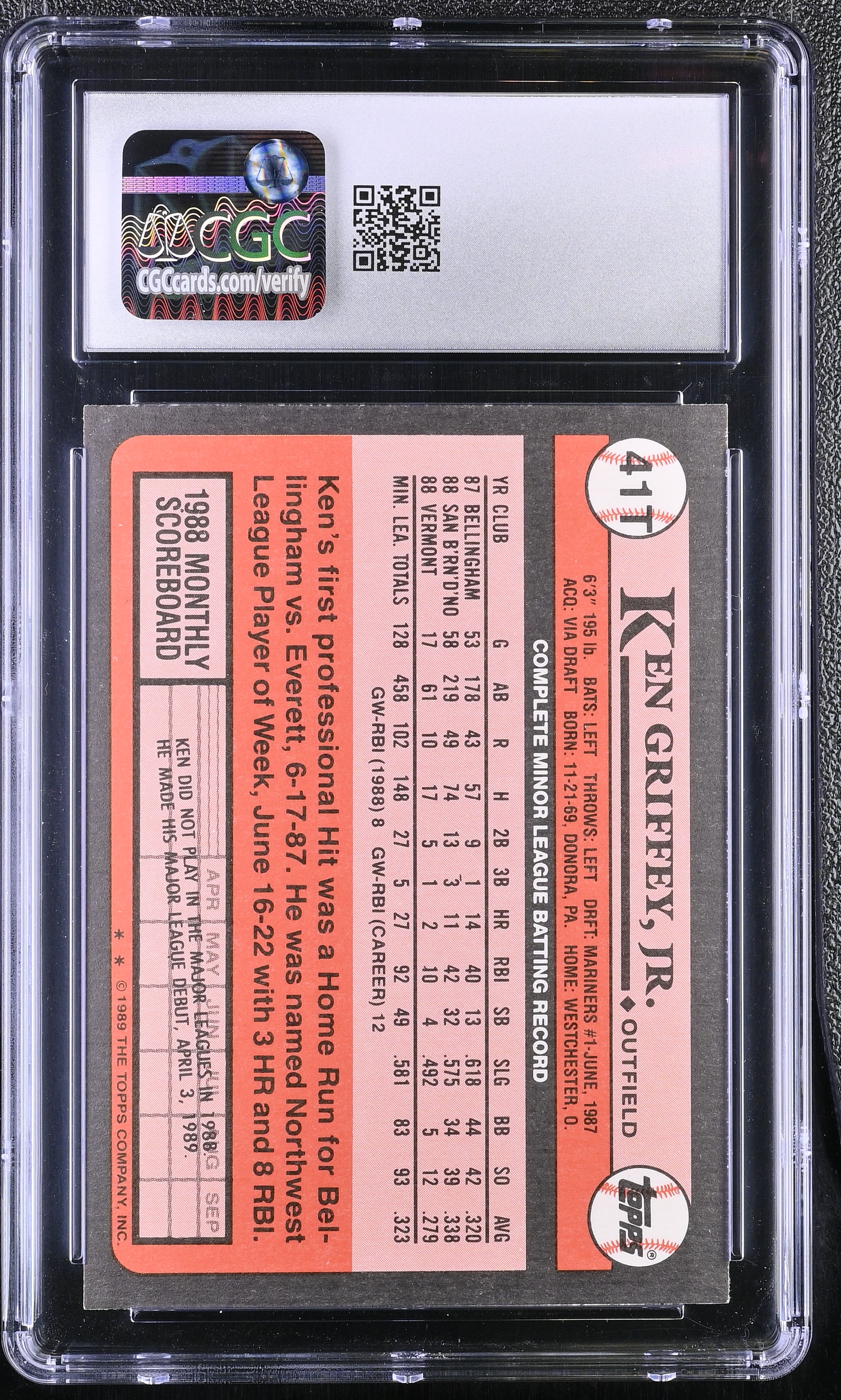 Ken Griffey Jr. 1989 Topps Traded #41T RC (CGC 9)