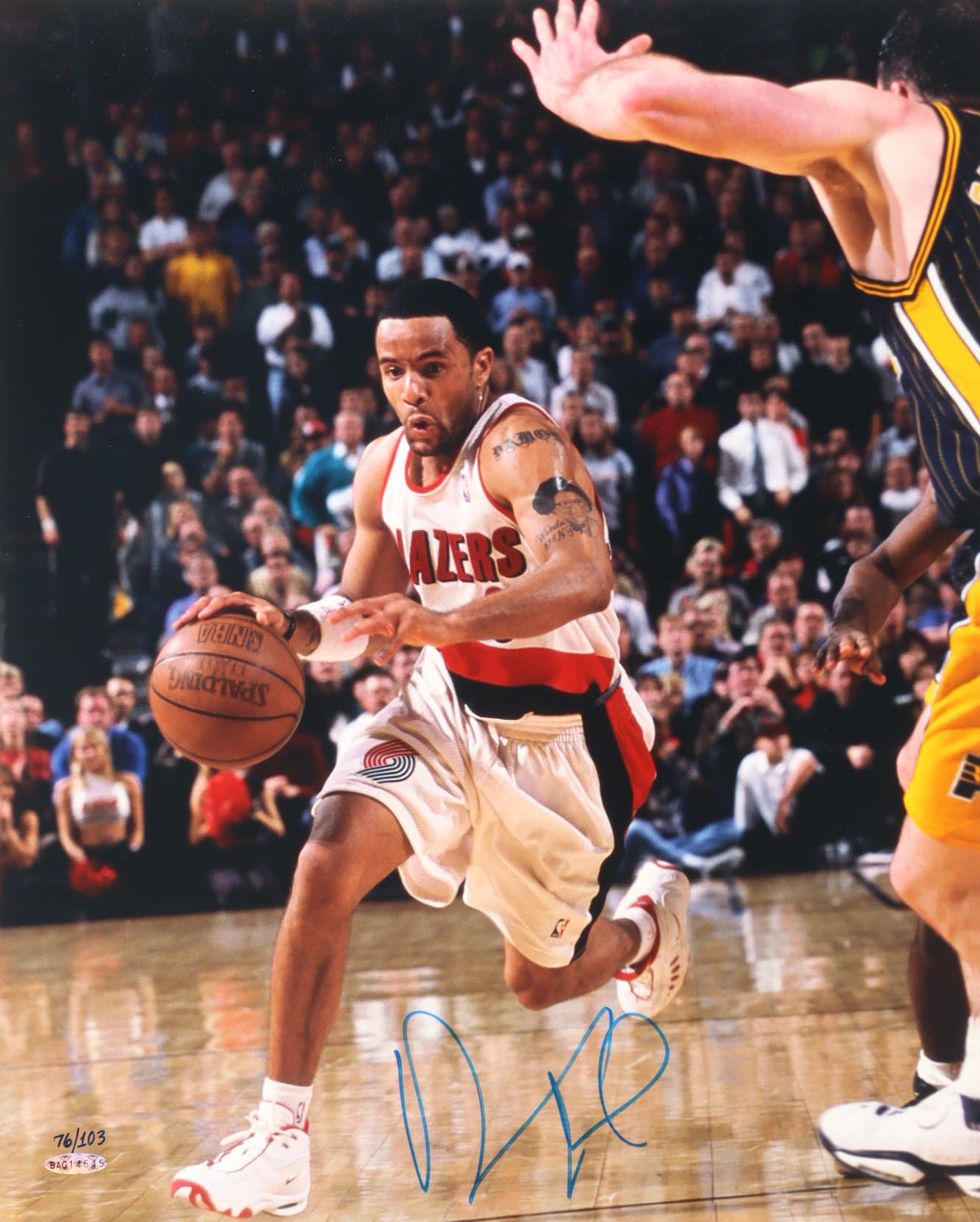 Photo measures 16" x 20" in size. Hand-signed by Damon Stoudamire (Portland Trail Blazers). Limited edition #76/103.