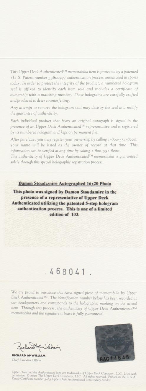The autograph(s) includes an official Upper Deck Authenticated (UDA) hologram and matching COA for authenticity purposes.