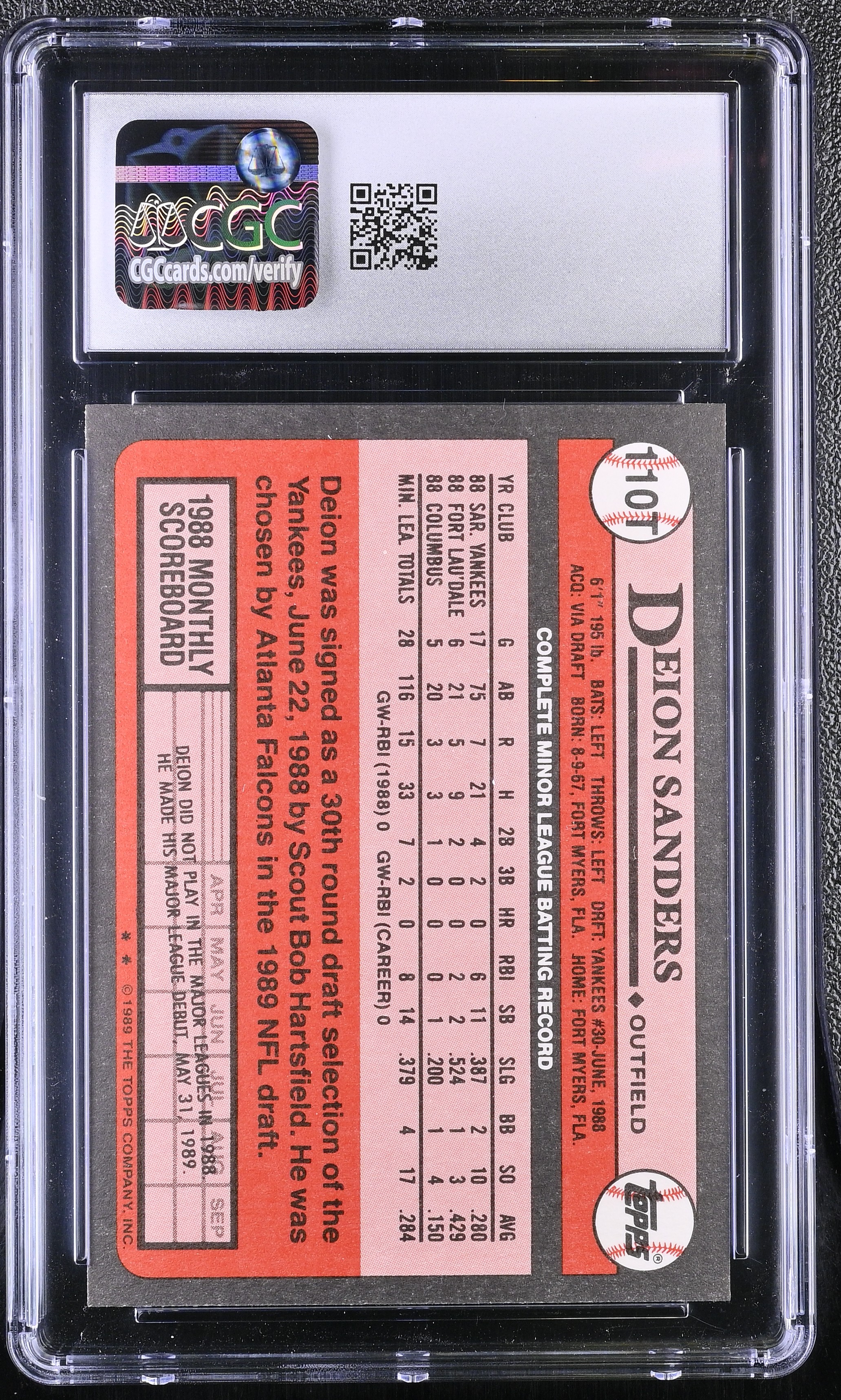 Deion Sanders 1989 Topps Traded #110T RC (CGC 10)
