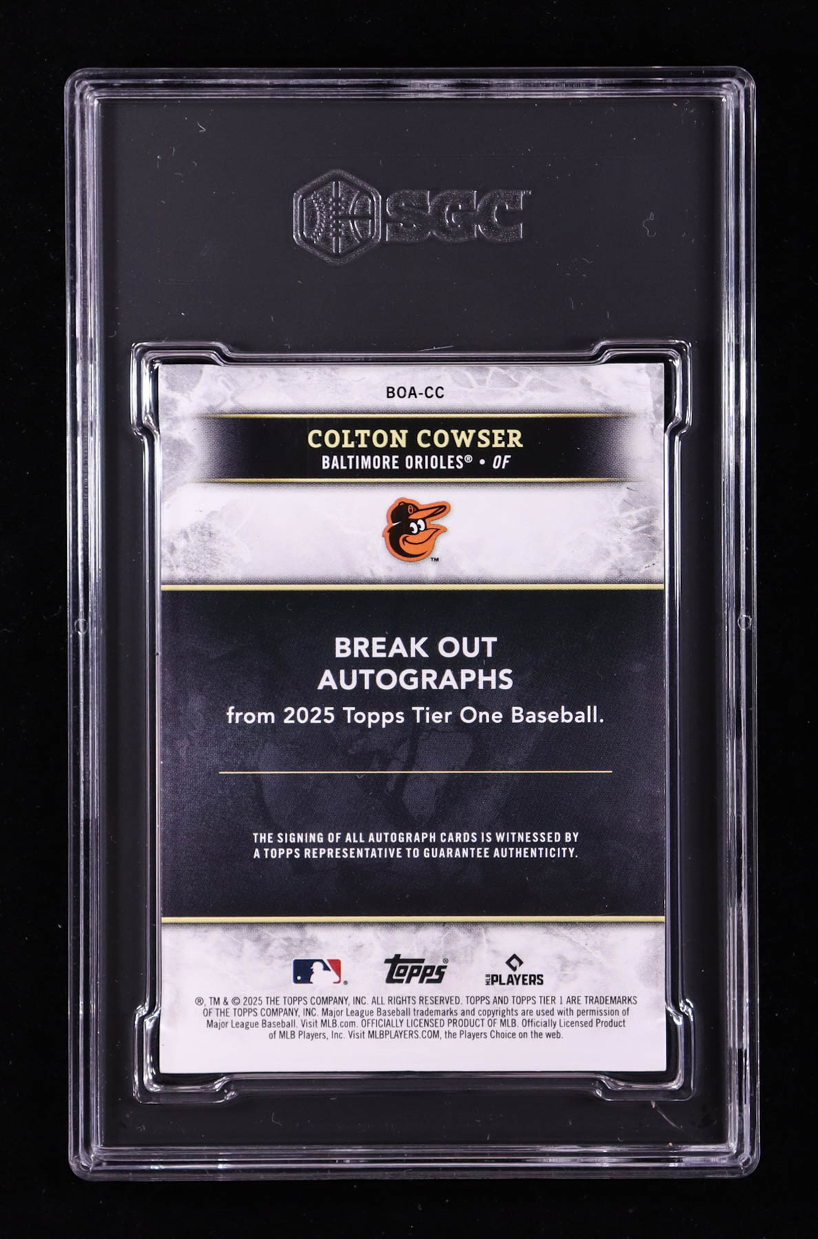 Colton Cowser 2025 Topps Tier One Break Out Autographs #BOACC #035/149 (SGC 8.5)