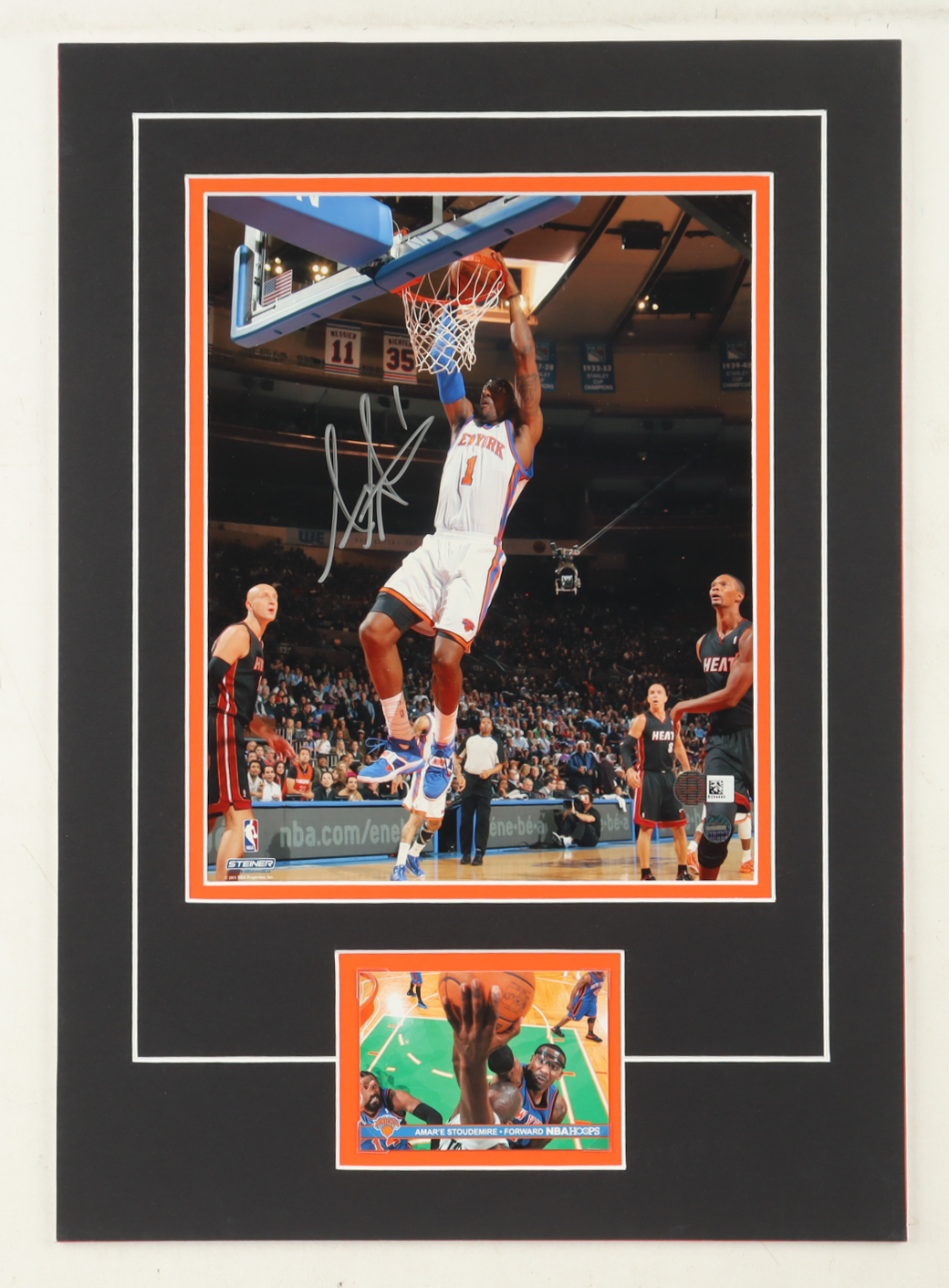 Amar'e Stoudemire Signed 12x17 Custom Matted Photo Display with Trading Card (SM & Steiner)