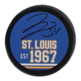 St. Louis Blues Logo Hockey Puck. Hand signed by Jake Allen.