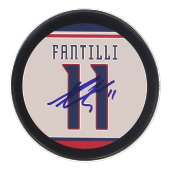 Columbus Blue Jackets Logo Hockey Puck. Hand-signed by Adam Fantilli.