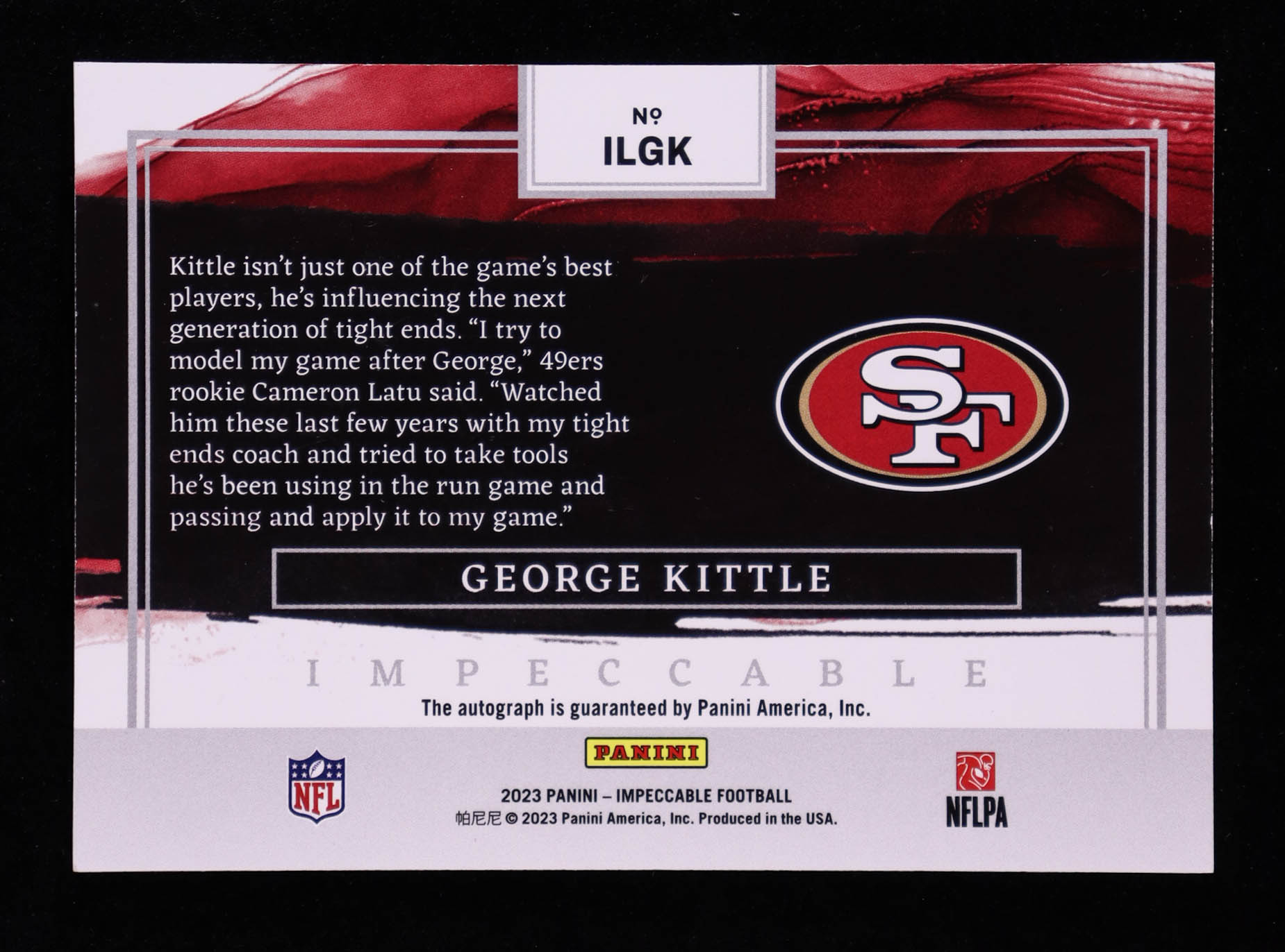 George Kittle 2023 Panini Impeccable Impeccable Logo Autographs #1 #64/99