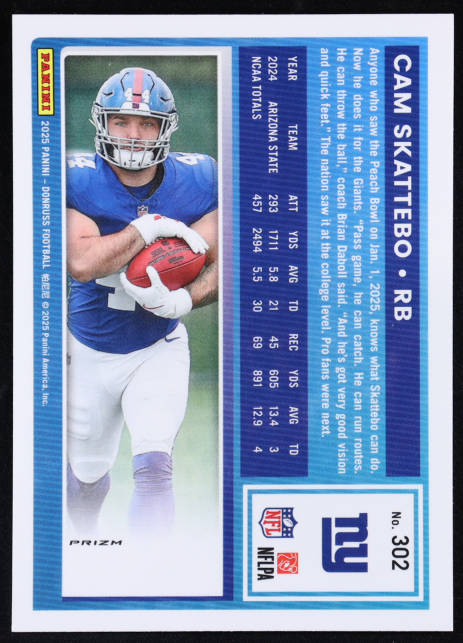 Cam Skattebo 2025 Donruss Optic Rated Rookies Preview Red Pandora #302 RC